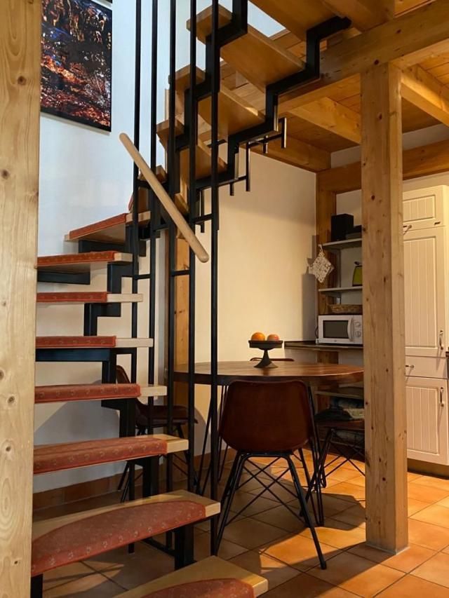 Über eine Wendeltreppe gelangen Sie in das Obergeschoss mit einem gemütlichen Schlafzimmer, ausgestattet mit einem Doppelbett, TV und einem großen Kleiderschrank für Ihre Urlaubsgarderobe.