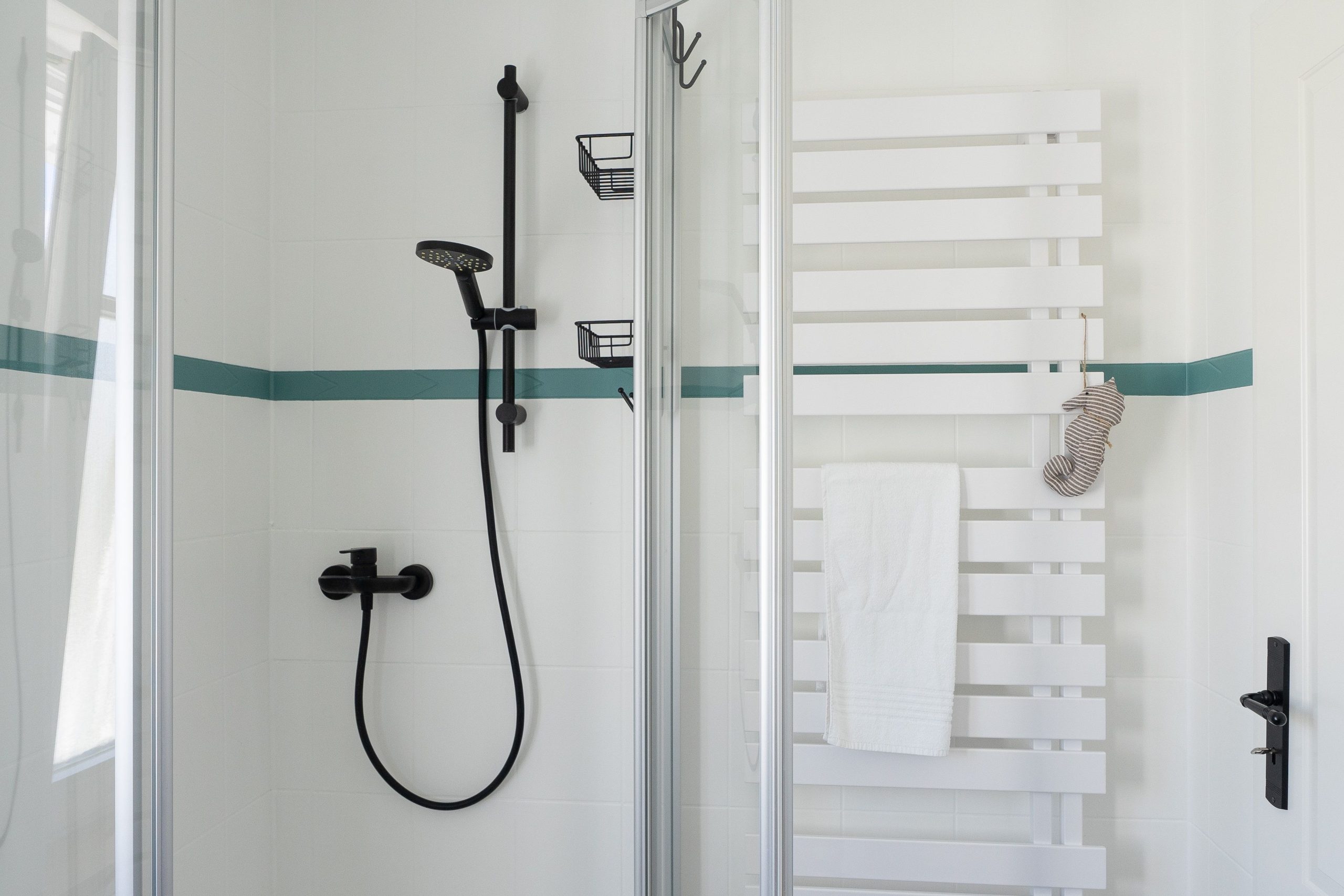 Das moderne Badezimmer bietet alles, was Sie für einen entspannten Start in den Tag brauchen: Dusche, WC, Waschbecken mit großzügigem Unterschrank, Handtuchtrockner und ausreichend Ablageflächen für Ihre Pflegeprodukte.