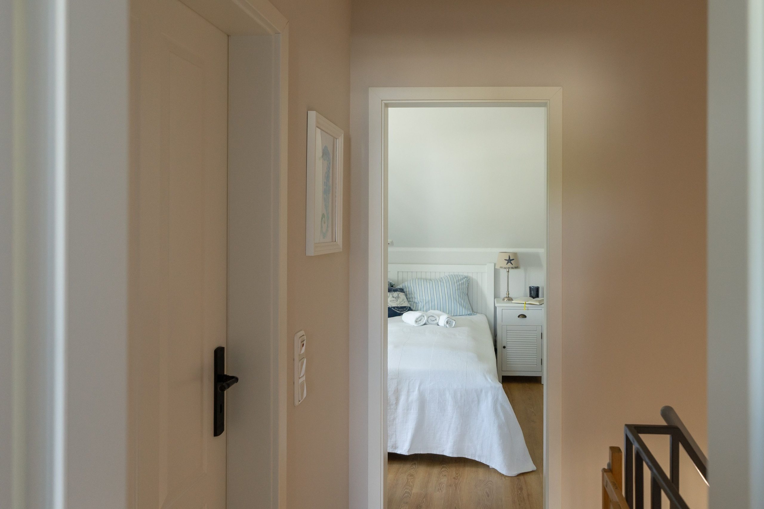 Über eine charmante Wendeltreppe erreichen Sie das Obergeschoss mit zwei separaten Schlafzimmern: