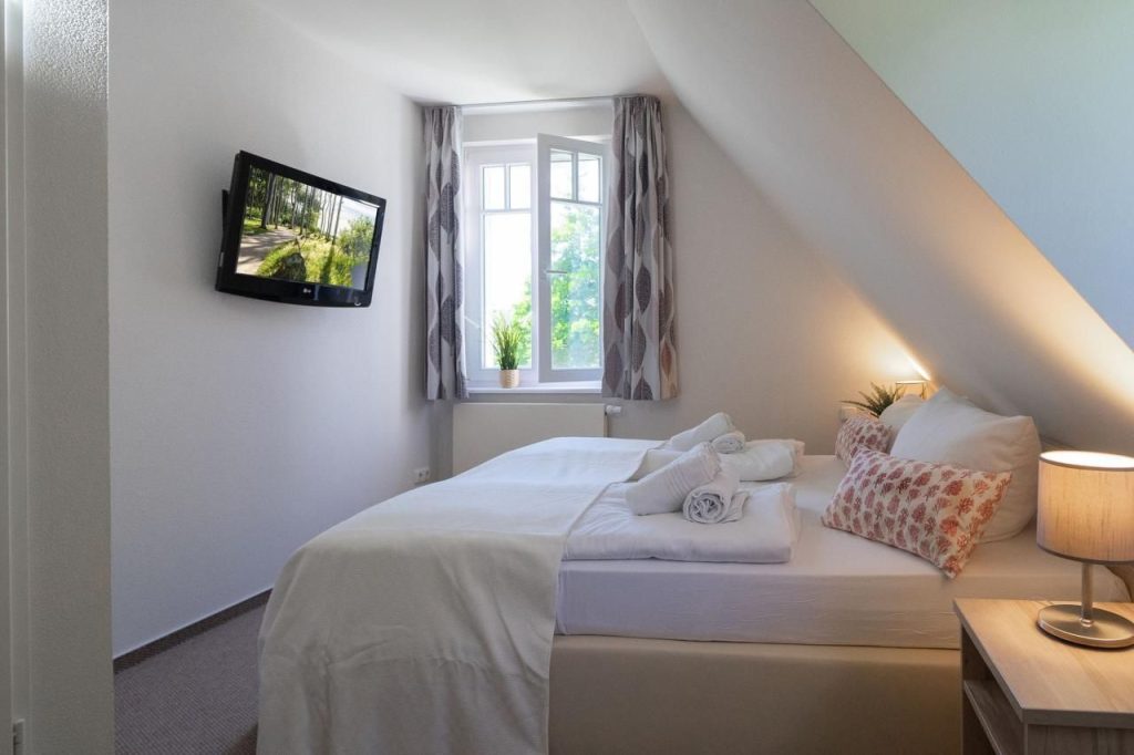 Schlafzimmer 1: gemütliches Doppelbett, Kleiderschrank, zusätzlicher Fernseher